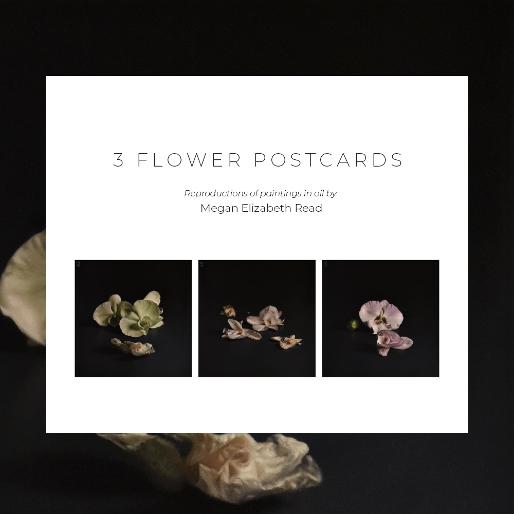 Three different square postcards with reproductions paintings and a soft touch finish.
